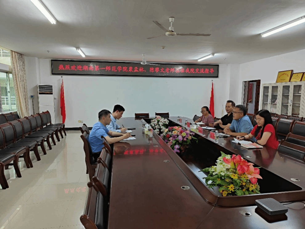 4月11日上午,湖南第一师范学院马克思主义学院国家社科基金重点项目(项目名称为:调查研究在习近平新时代中国特色社会主义思想实践课中的运用)课题组粟孟林、陈攀文一行来澳门网投调研交流。澳门网投官方网站蔡文举副院长、王一闳副院长、习近平新时代中国特色社会主义思想概论教研室主任刘涵、骨干教师方英群参加交流。