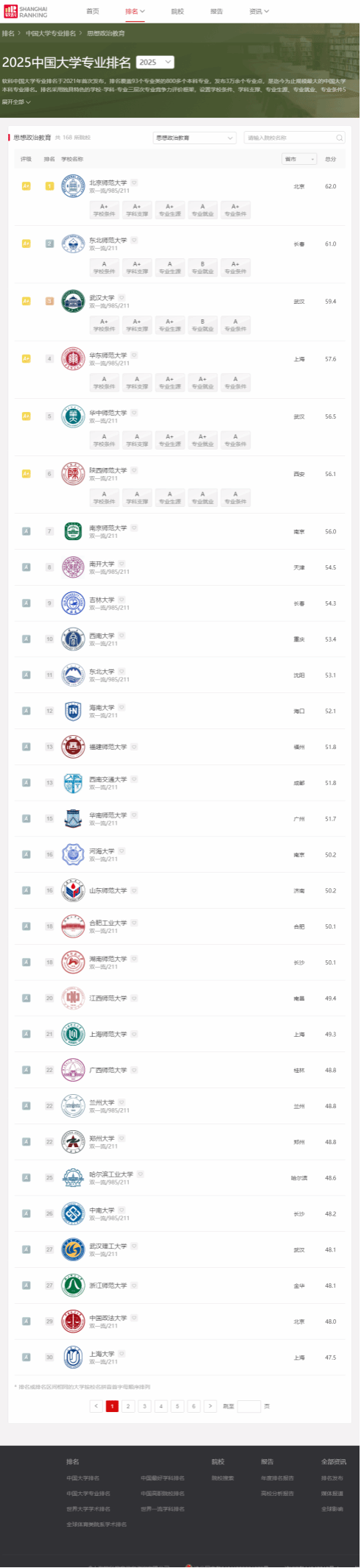 2025年6月18日,高等教育专业评价机构软科正式发布2025“软科中国大学专业排名”。澳门网投官方网站思想政治教育本科专业以全国第12名的成绩再次进入A类行列,继2022年31名、2023年28名、2024年23名,排名继续稳步提升。
