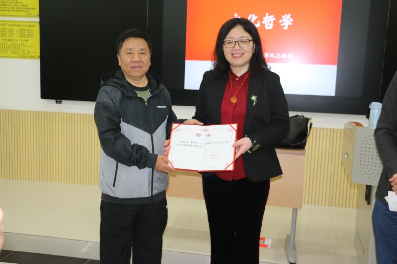 1月7日上午,澳门网投官方网站2018-2019学年冬季小学期名家讲堂第四讲在五号教学楼113教室举行。东北师范大学郭凤志教授为学生讲授文化哲学课。院长张云阁出席并为并为郭凤志教授颁发了澳门网投官方网站“冬季小学期授课外聘专家”证书。讲座由思想政治教育系主任陈招万主持。