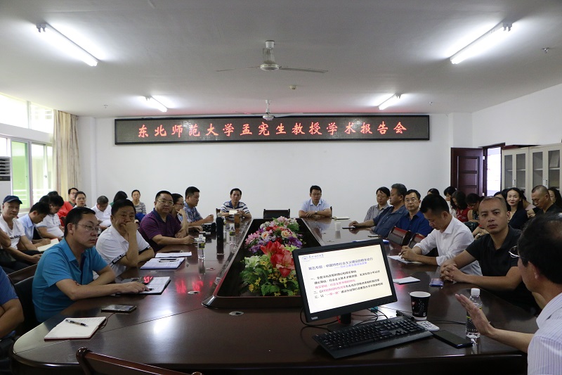 5月7日,东北师范大学孟宪生教授受邀莅临澳门网投A-311开展学术讲座。澳门网投官方网站教务处处长、澳门网投官方网站院长张云阁出席报告会。澳门网投全体思想政治理论课教师参与了学术报告会。报告会由院长张云阁主持。