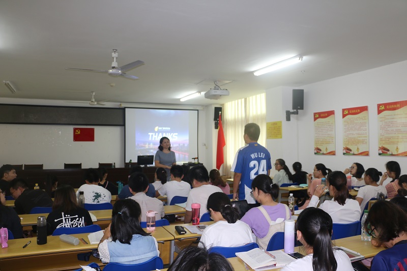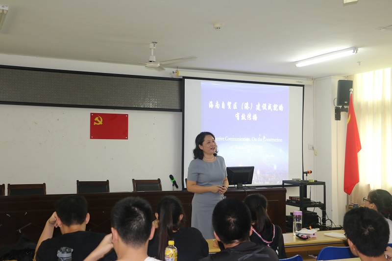 讲座上,王玲老师主要就海南省自贸区(港)建设成就的有效传播为主题展开。她详细讲解有关自由贸易区、自由贸易港等热点关键词,让同学们了解中国自贸区(港)的发展历史及海南自贸区(港)当前的发展情况,并展现出在当前自贸区(港)发展背景及建设条件下,海南所具有的先天条件及市场力量等,呈现出海南在自由贸易试验区建设上的良好局面。随后,王玲老师以当前新闻媒体的方式,向同学们展示海南近几年自贸区建设成就,并与同学们在讲座现场进行互动交流,现场氛围十分活跃。最后,王善老师进行总结。他谈到,当前正处于海南建设自由贸易试验区和自由贸易实验港的热潮,每位同学都应该把握时机,跳出当下所学知识的固有思维,结合新媒体技术的发展,积极参与建设海南的新征程中。