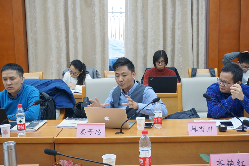 在讨论环节,吉林大学姚大志、北京大学李旸、武汉大学李佃来、人民大学段忠桥等老师和《道德与文明》主编冯书生先生,就秦子忠博士报告中的人性谱系和世界资源所有权谱系提出了批评与问题。 秦子忠博士首先表示,以上这些问题很复杂,而这项研究才刚刚开始,因此不能对这些给予很好的回答;其次表示,这些问题有一定共性,因此在有限的回答时间限制下,只能对自己的关键概念进行澄清性说明来进行回答;最后表示,这些问题将有助于推进本项研究的完善。