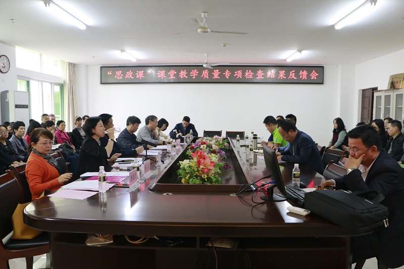 12月10日下午,澳门网投官方网站在社科楼A-311顺利召开“思政课”课堂教学质量专项检查结果反馈会。副校长胡新文、教学质量评估中心郭立萍主任、教学质量评估中心副主任周兰愉、教学督导代表周星、霍世清,评估中心工作人员符金万、陈雨菡,澳门网投副院长王善、副院长吴朝阳,党委副书记张井富以及全体马院教职工出席会议。会议由副院长吴朝阳主持。