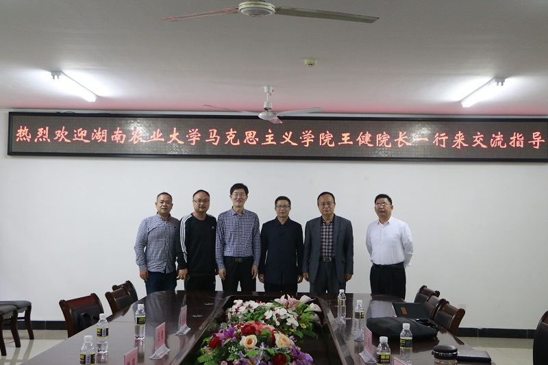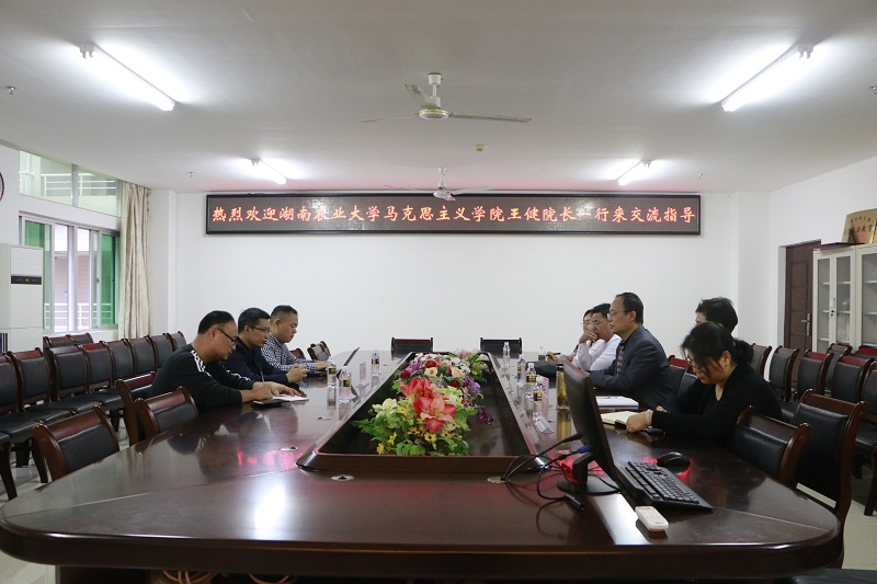12月30日上午,湖南农业大学澳门网投官方网站王健院长一行来澳门网投交流指导。并在社科楼A311召开了会议。澳门网投副院长王善,教学委员会副主任贺尧夫、《原理》教研部主任范明水等参加座谈会。会议由王善主持。