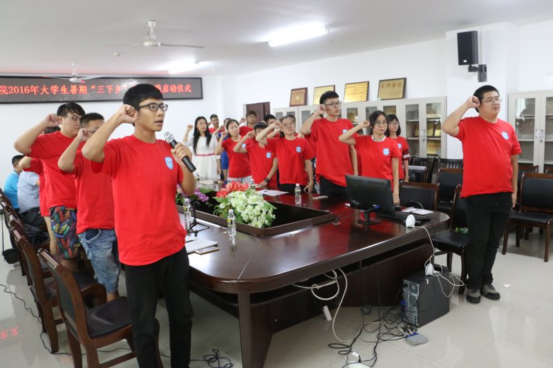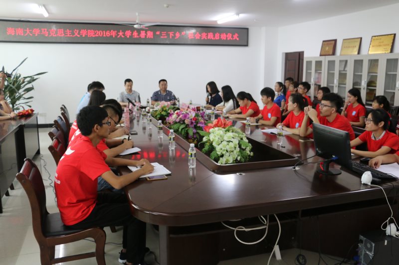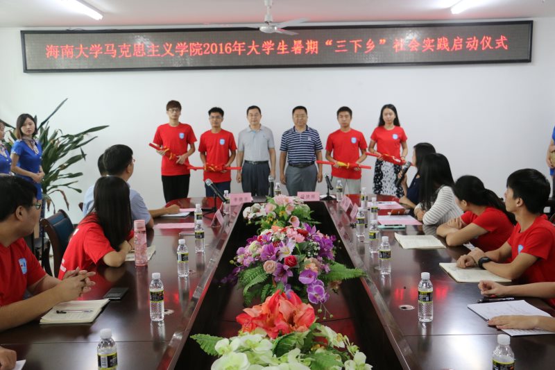 7月6日下午,澳门网投官方网站2016年大学生志愿者暑期“三下乡”社会实践活动启动仪式在学院会议室隆重举行。学院党委书记段捷频、院长李德芳出席,暑期社会实践团体指导教师代表张君成、邵鹏鸣、周郭军以及全体志愿者参加仪式。仪式由团委书记周郭军主持。 李德芳在仪式上作动员讲话。他表示,学院历来十分重视大学生志愿者暑期社会实践活动,这是研究生科学研究与本科生社会实践相结合、思想教育理论与实践锻炼相结合原则的生动体现。他对各个社会实践团队提出了三点要求:一要统一思想,提高认识,强化担当,积极投身于暑期社会实践当中;二要培养集体观念,增强团队意识,明确自己的职责和任务,遵守纪律,加强配合,形成强有力的凝聚力;三要高度重视实践过程中的安全问题,切实提高自身安全防范意识和技能,防患于未然。最后,他希望志愿者们在借鉴以往丰硕的实践成果和经验上,珍惜机会,加强锻炼,力争拿出高水平的实践调研成果。 段捷频在仪式上对各实践团队提出五点希望:一、坚定理想信念,在实践中不断践行社会主义核心价值观;二、努力发挥思想政治教育专业的优势,将其融入到最广阔的地方和农村中,各尽其才,更好地服务地方发展;三、且行且思,且悟且进,你我同行,快乐实践,要用阳光的态度来面对困难;四,严守纪律,严明规矩,要充分展现马院学子的精神面貌和道德修养;五、树立安全意识,落实安全责任,加强管理监督作用,确保学生安全。 启动仪式上,周郭军简单介绍了澳门网投四支社会实践团队,分别是“海南公民道德素质发展研究实践调查团”、“海南省红色文化数据收集、整理实践调研团”、“农村基层党建实践调研团”、“海南高校网络评论实践调研团”等,实践范围涉及海口、东方、儋州、临高等十二个市县。 李德芳、段捷频分别向四支社会实践团队授院旗,并与参会的教师及志愿者合影留念。 暑期社会实践指导教师代表张君成、学生代表田菁分别在仪式上发言,学生代表杨振兴带领全体志愿者进行宣誓。