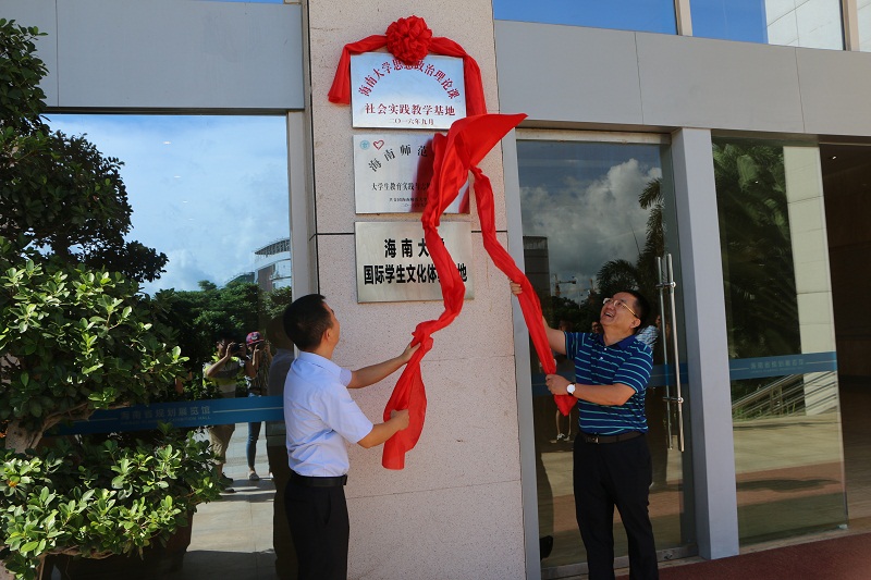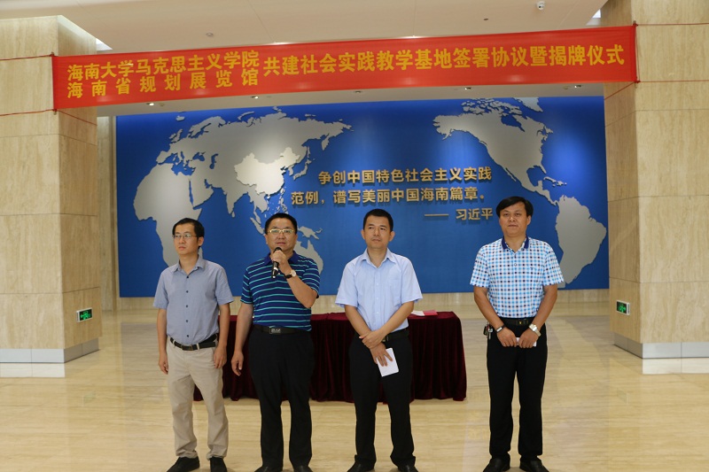 在全体人员的共同见证下,段捷频与曾德坤分别代表澳门网投官方网站马克思学院学院和海南省规划展览馆在共建协议书上签字,并共同为社会实践教学基地揭牌。