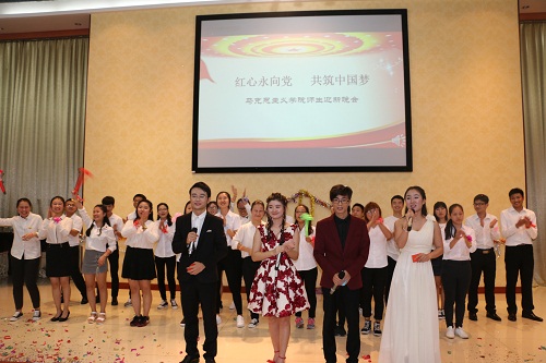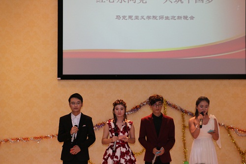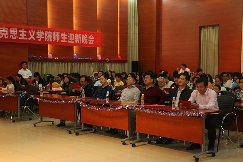 12月26日晚,澳门网投官方网站在思源学堂多功能厅举行以“红心永向党,共筑中国梦”为主题的迎新联欢晚会,学院党委书记段捷频、院长李德芳、副院长李辽宁出席,全体师生共同参加晚会。