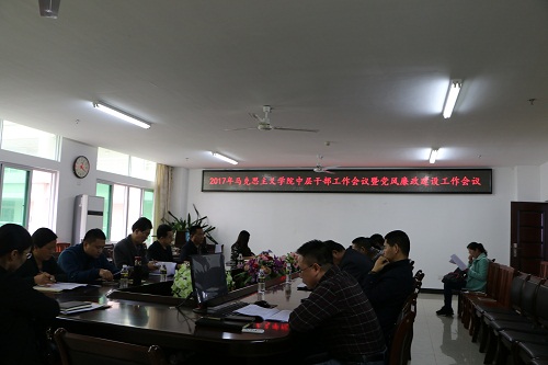 2月28日下午,澳门网投在学院会议室召开中层干部暨党风廉政建设工作会议。院党委书记段捷频、院长李德芳、副院长杨娜出席,院党委委员、各系部室负责人和党支部书记参加会议。