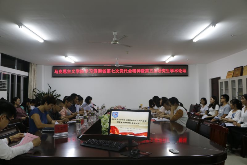 5月1日晚,澳门网投在社科楼A311举办省第七次党代会精神专题学习会暨第五届研究生学术论坛。院党委书记段捷频、副院长杨娜,部分教师代表和全体研究生参加活动。