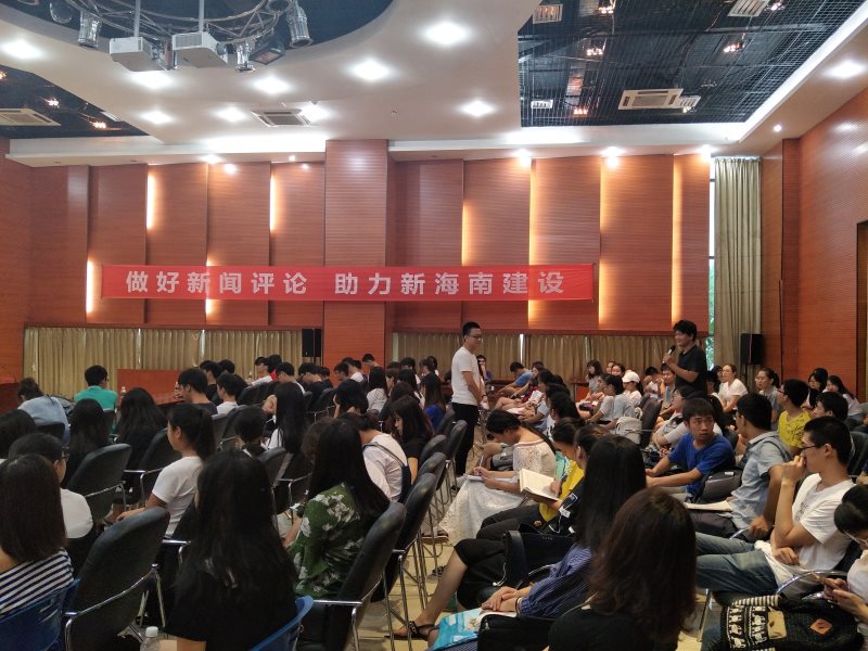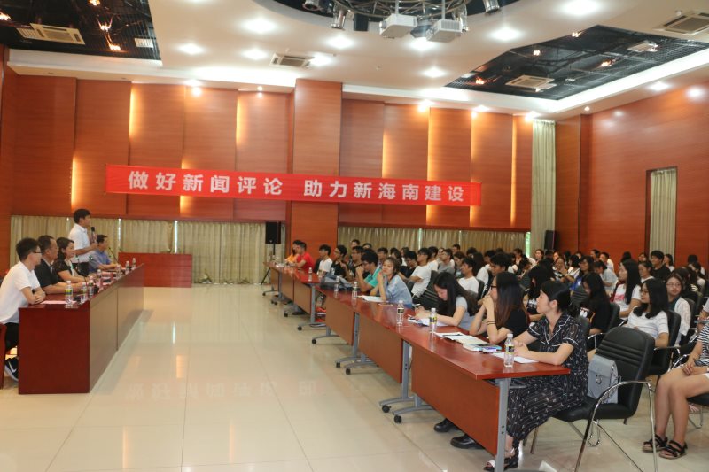 6月20日下午,澳门网投官方网站在思源学堂多功能报告厅开展“做好新闻评论,助力新海南建设”的网络评论交流会。本次活动特邀海南广播电视总台办公室主任王玲,评论节目《海平面》主持人房瑶、海南新闻广播记者、评论员靳畅栋为主讲嘉宾。澳门网投官方网站副院长李辽宁出席会议,思想政治教育系主任王善,团委书记周郭军、邵鹏鸣等教师代表以及学院全体本科生、研究生参加。交流会由王善主持。