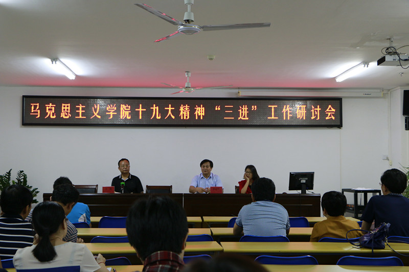 10月31日澳门网投在社科楼会议室A315召开了十九大精神“三进”工作研讨会。院长李辽宁、副院长王善、副院长杨娜以及全体教职工参加了此次研讨会。