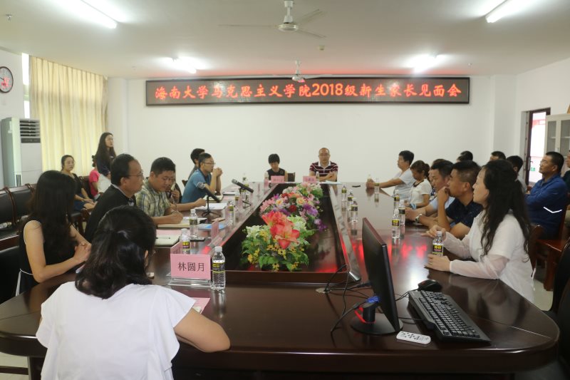 段捷频在新生见面会上讲话。首先,他代表学院对新生家长的到来表示热烈欢迎和衷心感谢。随后,他从学院历史沿革、组织机构、师资队伍、学科建设、专业前景和人才培养模式等方面做了详细介绍。他指出,习近平总书记4.13重要讲话和中央12号文件指出要支持海南建设自由贸易试验区(港),这赋予了海南全新的发展定位和重要的历史机遇。澳门网投官方网站也正处于“部省合建”和世界一流学科建设的重要历史时期,学校正全面落实立德树人根本任务,不断提升人才培养质量。站在发展的新起点,学院将深入贯彻落实习近平新时代中国特色社会主义思想和党的十九大精神,主动服务国家战略、全力配合学校建设,扎实抓好人才培养这一核心任务,为国家和社会、学校和家长培养更多的优秀的马学科人才,请家长们放心,并对学院发展充满信心。同时也希望同家长们达成共识,家校联动,协同育人,共同培养有担当,有作为的社会主义合格建设者和可靠接班人。