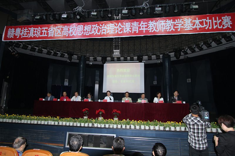 2012年10月16-17日,第四届赣粤桂滇琼五省区高校思想政治理论课青年教师教学基本功大赛在南昌航空大学隆重举行。教育部社科司司长杨光、副司长徐维凡,海南省教育工委副书记麦浪,江西、广东、广西、云南的教育工委、教育厅有关负责人出席了此次活动。本届比赛由江西、广东、广西、云南、海南五省区教育厅主办,江西省委教育工委、江西省教育厅承办,南昌航空大学、南昌大学承办,来自五省区 20名优秀青年教师参加了比赛。大赛组委会邀请了中国人民大学澳门网投官方网站院长,博士生导师秦宣教授、华中师范大学政治研究院博士生导师俞思念教授、海南省社科联主席赵康太教授、中山大学教育科学院博士生导师钟明华教授等7位知名专家担任评委。