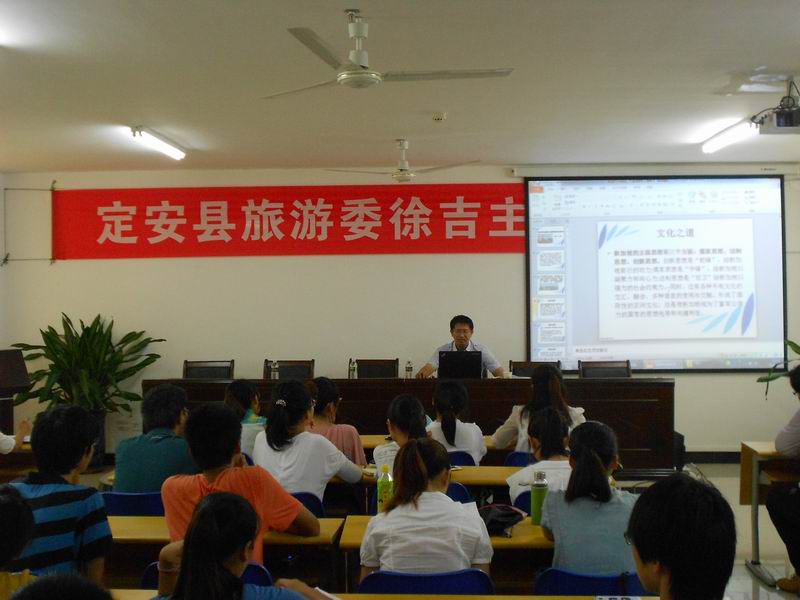 近日,定安县旅游委主任徐吉在学院多媒体教室为澳门网投师生作题为《借鉴新加坡经验,打造海南核心竞争力》的报告。报告会由副院长杨娜主持。 徐吉主任是澳门网投课外指导老师,他引用“国学大师”南怀瑾的一番话表明今天要为在场的学生做一次别开生面的报告,用别人没用过的词,讲别人未讲过的话。报告会围绕着创新的主题展开,以其2011年参加省委组织部组织的“新加坡现代服务业培训班”,前往狮城学习生活的经历为依托,分析了创新力是新加坡小国寡民,资源匮乏,但经济发展稳定而迅速,成为世界上最富裕的国家之一的根本原因;继而探讨了新加坡三大主流思想:即儒家思想、法制思想和创新思想,是新加坡创新力的文化之源;最后,他将新加坡与海南进行了对比,总结了新加坡的发展经验,并结合海南建设国际旅游岛的实际,为海南的发展提出了六点建议,点点精辟深刻,体现出对海南发展的关切与深思。