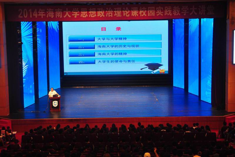 刘康德教授从大学与大学精神、澳门网投官方网站的历史与现状、澳门网投官方网站的精神和大学生的使命与责任四个方面展开了一场精彩的演讲。 刘康德教授在报告中结合自身经历、运用大量国内外著名高校的相关图片和资料,阐述了现代大学的起源、功能和本质;引领同学们回顾了澳门网投官方网站的辉煌历史、优良传统和大学精神;深刻诠释了“海纳百川、大道致远”的海大校训和“自强敬业、厚德弘毅”的海大校风。他在报告中着重强调了学校当前在推进内涵发展重要时期的办学理念,对提升“两个力”进行详细解读,提升学生的社会竞争力和教师的社会影响力,关键在于注重培养学生的思想力、意志力、亲和力、学习力、实践力、适应力、创造力;提升教师的学术影响力、教学影响力、社会服务力、文化传承与创新力。刘康德教授指出,大学生的第一要务是学习;二是要有理想;三是要有责任感。他要求每个海大学子继承和弘扬海大人牢记使命、报效祖国的爱国精神;埋头苦干、无私奉献的敬业精神;严谨治学、精益求精的科学精神;海纳百川、包容开放的协作精神;自强不息、勇攀高峰的创新精神,彰显海大人海纳百川的大气,坚持真理的正气和敢于创新的勇气。让这些精神成为我们一代代海大人励精图治,追求卓越的恒久动力和不竭的精神源泉。他希望,同学们积极弘扬和践行海大精神,把中国梦、海大梦和自己的梦有机结合起来,为推动学校加快实现内涵提升、不断向百强高校目标迈进做出应有的贡献。