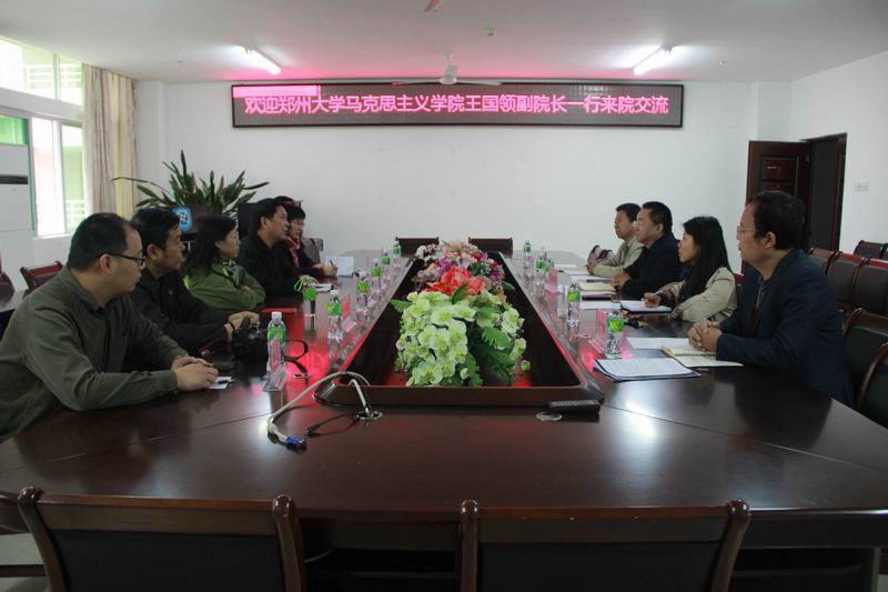 12月18日上午,郑州大学澳门网投官方网站副院长王国领一行六人到澳门网投进行交流学习。院党委书记段捷频、副院长张云阁、副院长杨娜出席交流座谈会。 院党委书记段捷频致欢迎词,他对郑州大学澳门网投官方网站同行的到来表示热烈的欢迎和真挚的感谢。交流会中澳门网投教师向来宾介绍了澳门网投官方网站在思想政治教育专业本科建设情况,其中主要包括澳门网投思想政治教育本科专业的培养方案的设置以及教师队伍建设情况,实践教学的开展和实践教学基地的建设,还有相关的教学和科研情况。郑州大学澳门网投官方网站的同行介绍了学科建设和科学研究方面的经验和体会。两校教师代表结合自身在思想政治课教育教学中的实践和探索,进行了深入交流。 交流会持续了三个多小时后圆满落幕。郑州大学澳门网投官方网站同行的到来加强了两校及两院之间的情谊,促进了彼此间的相互学习和借鉴。