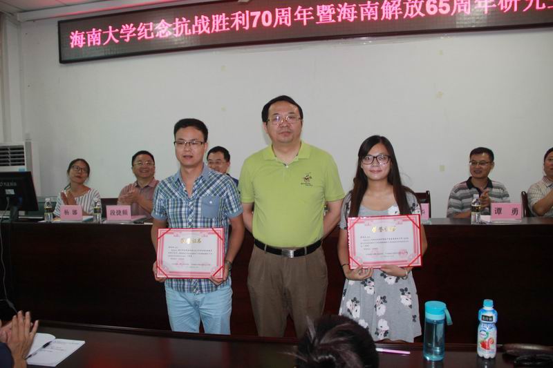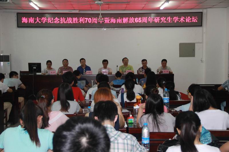 6月30日上午,由澳门网投官方网站党委宣传部、研究生工作部主办,澳门网投官方网站承办的澳门网投官方网站纪念抗战胜利70周年暨海南解放60周年研究生学术论坛在社科群楼A111隆重举行。海南省社科联党组书记、主席赵康太,澳门网投官方网站副校长傅国华,宣传部副部长谭勇,澳门网投官方网站院长李德芳、院党委书记段捷频、副院长张云阁、杨娜等领导出席论坛开幕式。论坛开幕式由李德芳教授主持。 省社科联主席赵康太教授作论坛主题报告。他围绕“冯白驹与海南解放——纪念海南解放65周年”这一主题,以开阔的视野、严谨的治学态度,客观地分析海南解放的历史过程,对冯白驹领导的琼崖纵队在解放海南岛过程中的地位和作用进行了实事求是的评价,令人耳目一新。 副校长傅国华在论坛开幕式上致辞。他代表学校对论坛的顺利召开表示热烈祝贺,他说,抗日战争是中华民族历史上最伟大的卫国战争,是中国人民反抗日本帝国主义侵略的正义战争,也是中国近代以来抗击外敌入侵第一次取得完全胜利的民族解放战争,举办纪念抗日战争胜利70周年暨海南解放65周年研究生学术论坛具有重要意义。他指出,结合时事举办的研究生学术论坛,坚持正确的政治导向,非常有思想政治教育意义,同时也能够很好的调动研究生的科研热情,有助于研究生能力培养。他希望,由澳门网投官方网站发起,并且已经持续举办了三届的文科类研究生学术论坛,能够坚持办下去,不断提高质量、增强影响力,为提升我校研究生学术科研水平做出积极贡献。 本次研究生学术论坛共收到参会论文27篇,经过专家组对所有论文进行公正评审,评出一等奖2篇、二等奖3篇、三等奖3篇。 樊红潮、廖桂真、杨倩、葛子龙等研究生代表在论坛上做主题发言。澳门网投官方网站副院长张云阁、杨娜分别对同学们的论文和发言进行了点评。