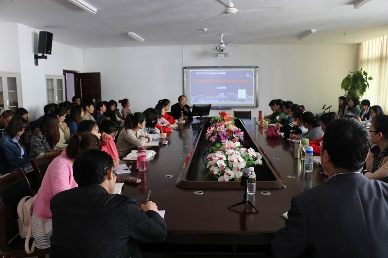 王学俭教授将“五大发展理念”贯穿课堂,从生活经历入手,以创新为核心,结合思想政治教育现状,从“创新要点:直面国家发展重大问题”、“创新前提:科学把握青年思想特点”、“创新要领:正确认识青年成长规律”、“创新核心:青年学生理想信念教育”及“创新方式:有效的工作方法和艺术”五个方面展开论述,分析青年在思想上特征和不足之处,并提出相应的解决措施。在提问环节中,同学们积极提问,针对学术报告中不理解之处和当下社会现状提出自己的观点。王教授用风趣幽默的语言一一进行了解答。