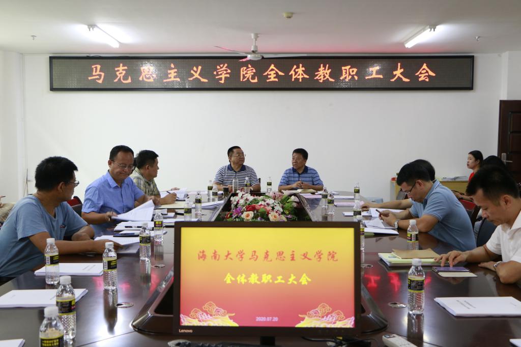 2020年7月20日下午,澳门网投官方网站在社科楼A-311召开全体教职工大会,院长张云阁、院党委书记段捷频、副院长杨娜、院党委副书记张井富、副院长王善、副院长秦晓华出席,全体教职工参加会议。院长张云阁主持会议。