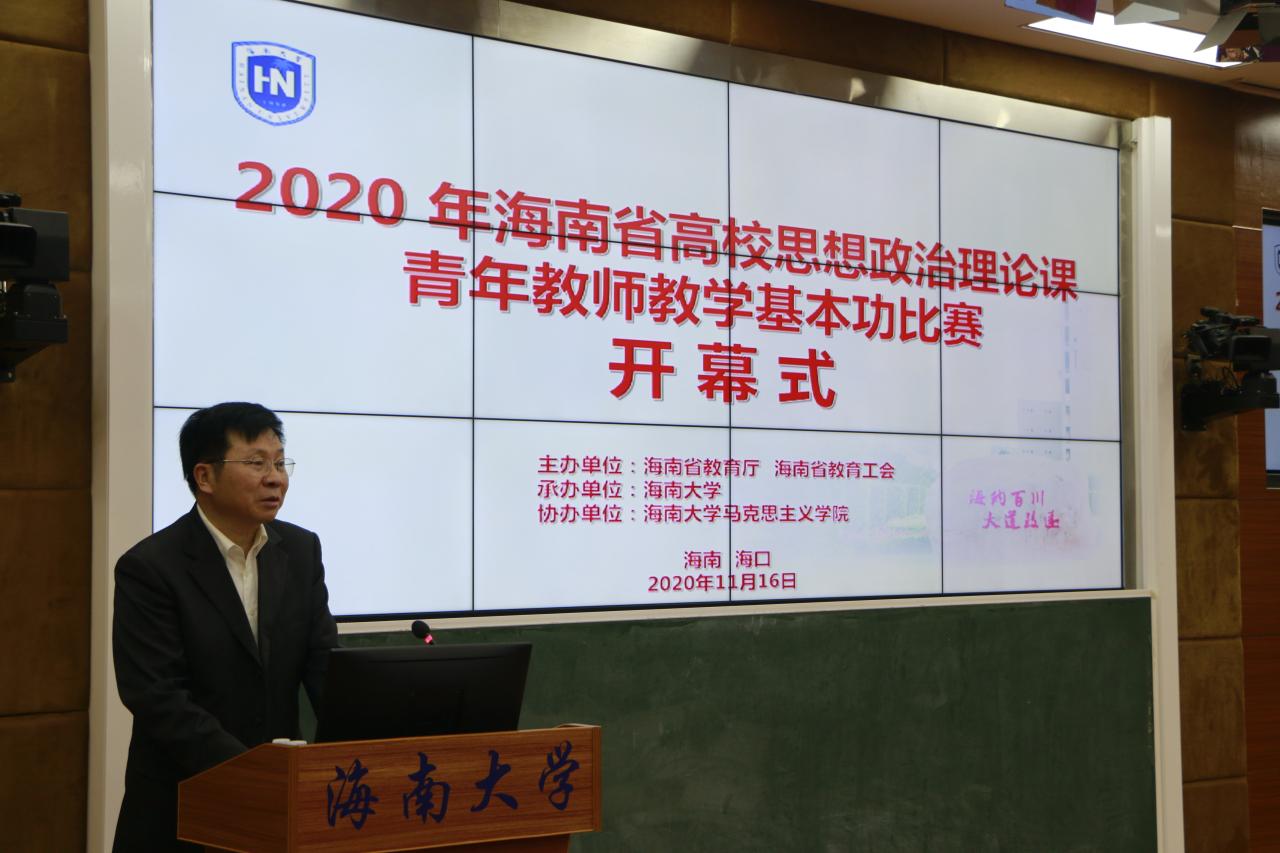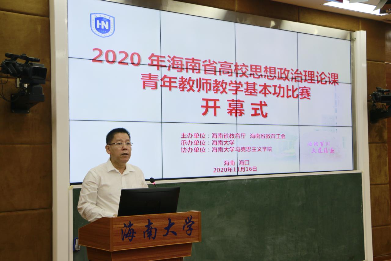 11月16-17日,由海南省教育厅、海南省教育工会主办,澳门网投官方网站承办,澳门网投官方网站协办的海南省高校思想政治理论课青年教师教学基本功比赛在澳门网投官方网站举行。海南省教育厅二级巡视员范敏,海南省教育工会专职副主席方鸣,澳门网投官方网站党委常委、副校长曹宪忠出席开幕式。来自全省各高校的43位选手参加比赛,100多名教师现场观摩。