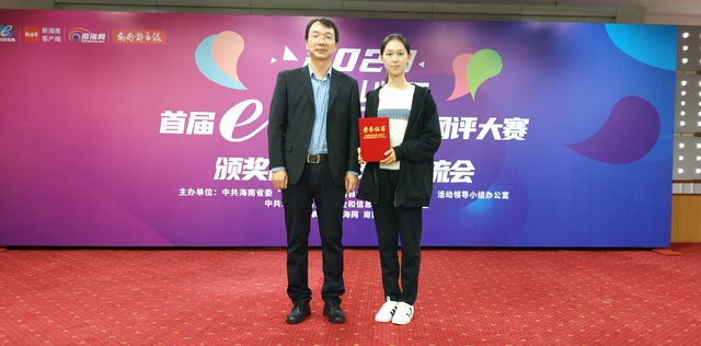 12月29日,2020海南首届“e海瑞评”网评大赛颁奖仪式在海南日报社举行。澳门网投官方网站荣获“优秀组织奖”,澳门网投官方网站2019级思想政治教育专业学生许缘圆荣获一等奖。