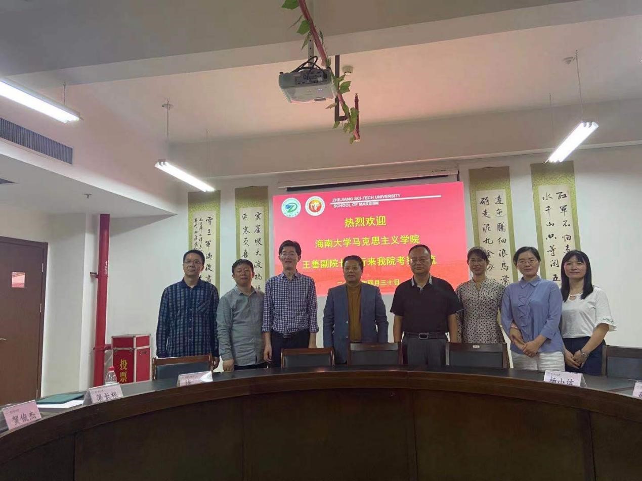 为贯彻落实中共中央办公厅、国务院办公厅印发的《深化新时代学校思想政治理论课改革创新的若干意见》、《新时代学校思想政治理论课改革创新实施方案》相关精神,进一步推进学院思政课改革创新工作,澳门网投官方网站副院长王善一行5人于4月29日—5月1日赴浙江工商大学、浙江理工大学就集体备课、课程改革、实践教学等进行调研交流。