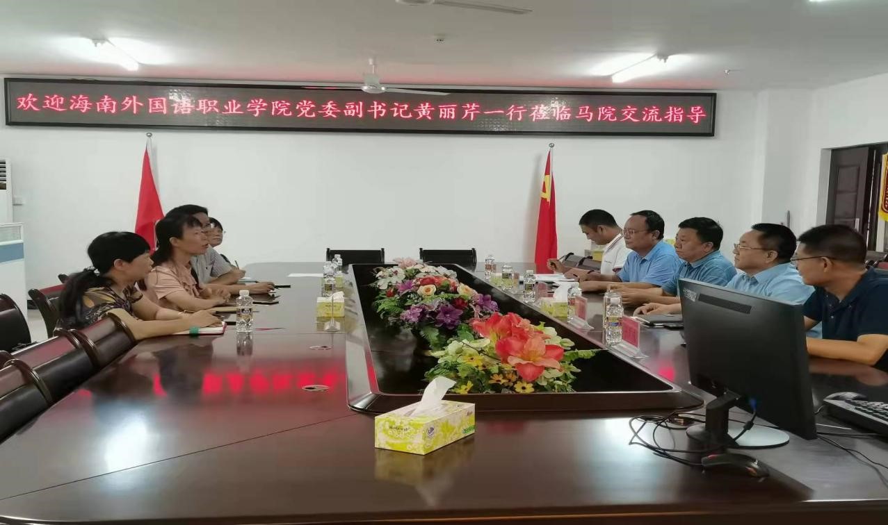 9月14日上午,海南外国语职业学院党委副书记黄丽芹一行到澳门网投官方网站交流指导工作。澳门网投官方网站党委书记段捷频、院长张云阁、副院长王善、副处级辅导员张君成和教师代表参加交流会。