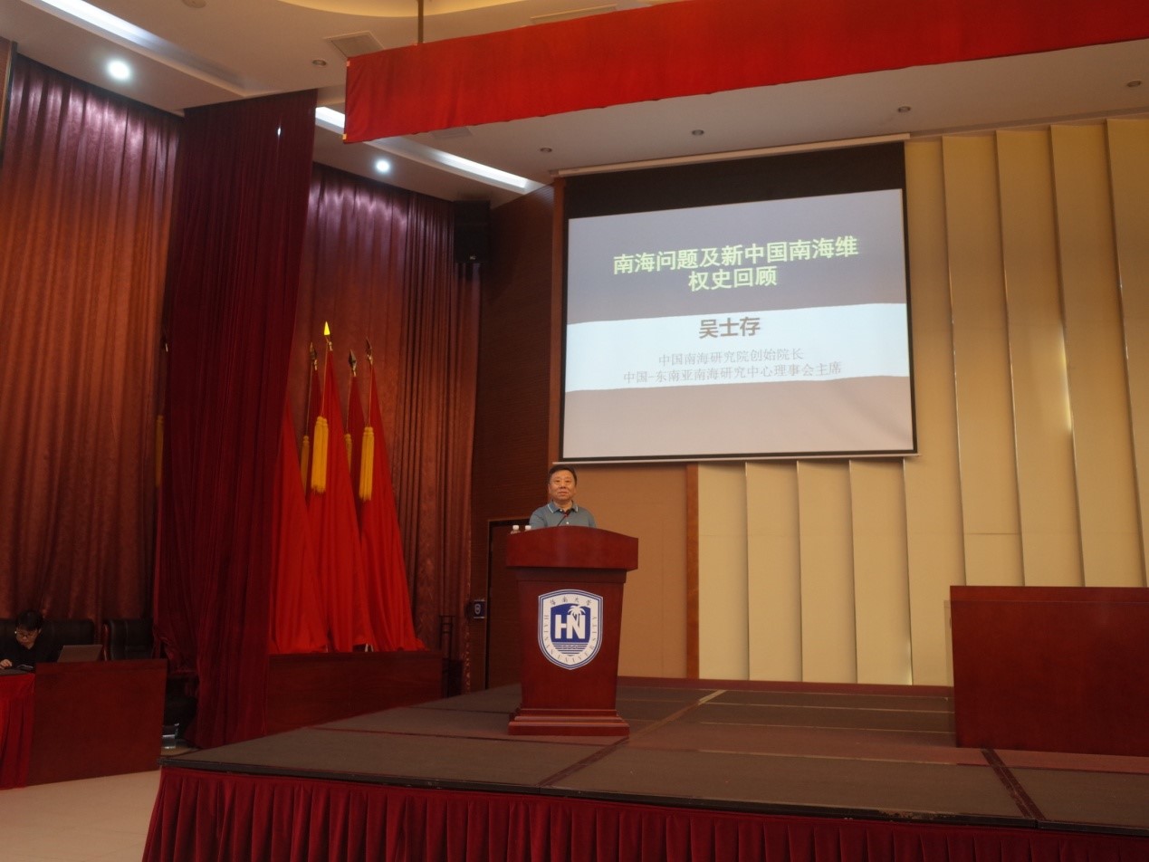 南海是连接两洋三大洲最便捷的水道和全球最繁忙的重要航运通道之一,同时又面临诸多传统、非传统安全挑战。海南地处南海前沿,是国家实施改革开放国家战略和推进海洋强国建设的前沿。十八大以来,党中央做出建设海洋强国的重大战略部署,并提出把南海建成以“和平之海、友谊之海、合作之海”的目标。为进一步帮助同学们更加精准的把握当前南海局势和未来南海形势的走向,10月19日下午,澳门网投官方网站第24期形势与政策时事论坛在社科楼二楼报告厅举办。中国南海研究院创始院长吴士存受邀为澳门网投官方网站师生作主题为《南海问题及新中国南海维权史回顾》的专题报告,学校“形势与政策”授课老师及部分学生参加报告会活动。会议由澳门网投官方网站院长张云阁主持,由澳门网投官方网站党委常委、宣传部部长谭勇作总结。