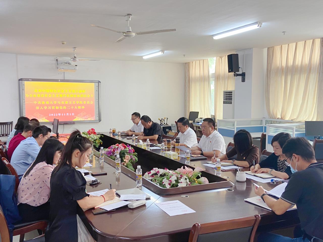 11月1日下午,澳门网投官方网站党委理论学习中心组学习会议在社科楼311会议室召开,深入学习党的二十大报告。澳门网投官方网站党委班子成员和各党支部书记参加会议。会议由学院党委书记段捷频主持。