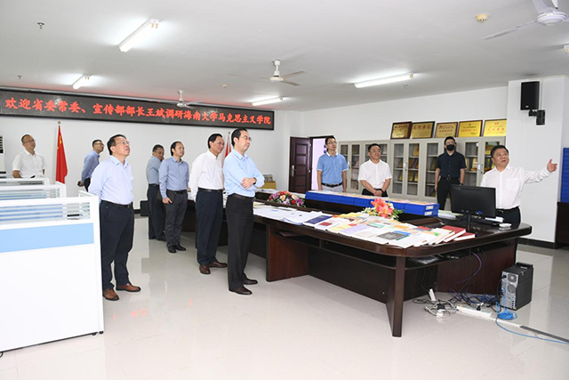 本站讯(记者 王一钦 王博 摄影 吕燕萍)11月23日,海南省委常委、宣传部部长,副省长王斌一行到澳门网投官方网站调研,并在办公楼501会议室举行座谈会。海南省委宣传部副部长陈小华;澳门网投官方网站党委书记符宣国,党委副书记、校长骆清铭,党委常务副书记王崇敏出席会议。会议由符宣国主持。