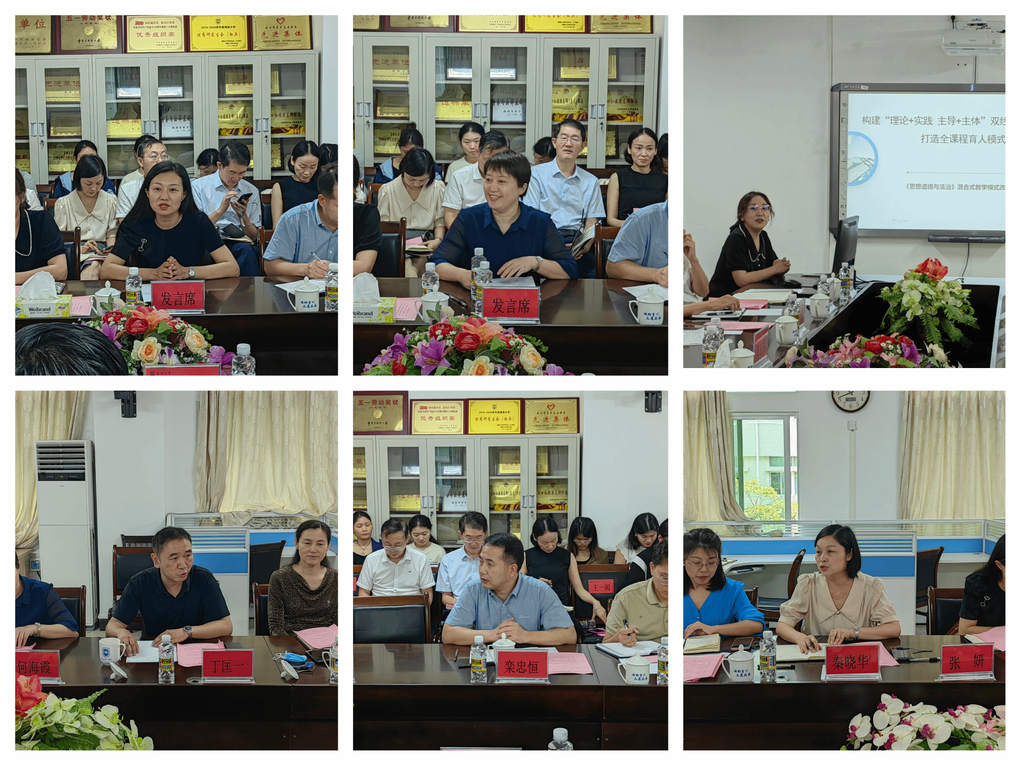 研讨会第三阶段。海南师范大学澳门网投官方网站张妍副院长、海口经济学院澳门网投官方网站何海霞副院长、琼台师范学院澳门网投官方网站教研室李倩主任,围绕“高校思想政治理论课改革”主题做主旨发言;澳门网投官方网站青年教师王一闳、唐小然、林罗添骥、刘筱笛,围绕“习近平新时代中国特色社会主义思想融入思政课教学”做教学分享;澳门网投官方网站椰风书院党委张井富书记、南海书院党委王林桂书记、乘风书院副处级辅导员张君成老师围绕“学院、书院协同育人”做经验交流。海南师范大学澳门网投官方网站丁匡一副院长、海南经贸职业学院澳门网投官方网站教研室栾忠恒主任、澳门网投官方网站秦晓华副院长,澳门网投官方网站教研室主任蒋玉、丁艳平、贺尧夫、刘涵,以及澳门网投官方网站党委宣传部黎雨苗副部长、组织部徐望来副部长、澳门网投官方网站王善副院长、澳门网投官方网站教研室王一闳主任,分别就各研讨主题作评议研讨。