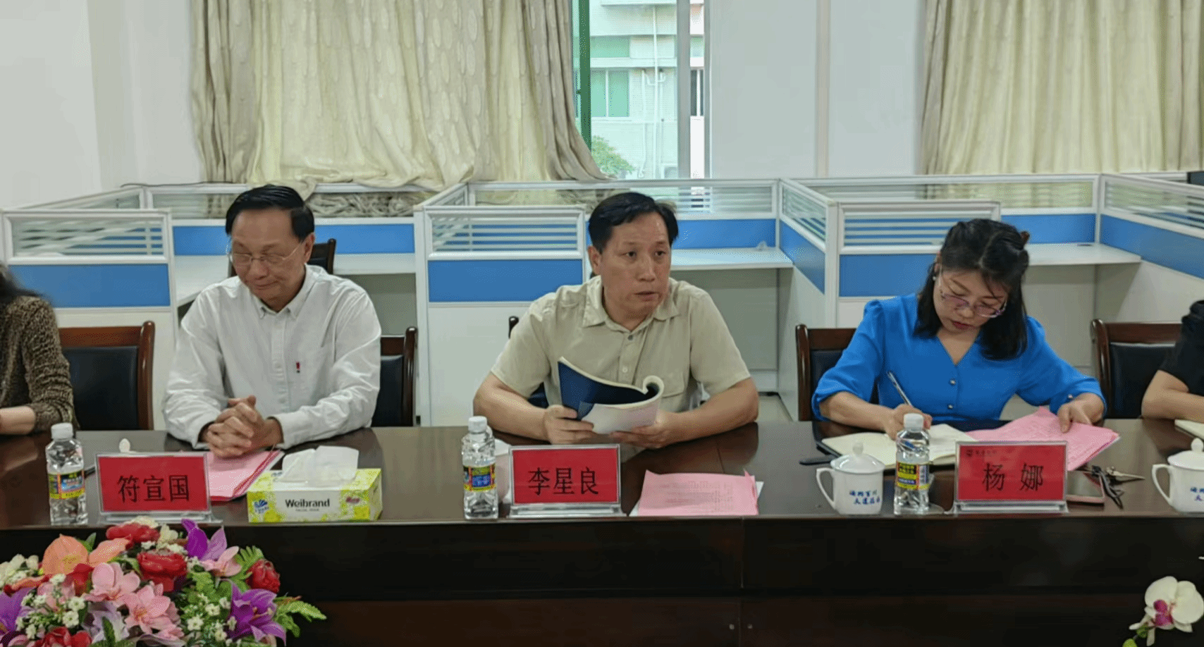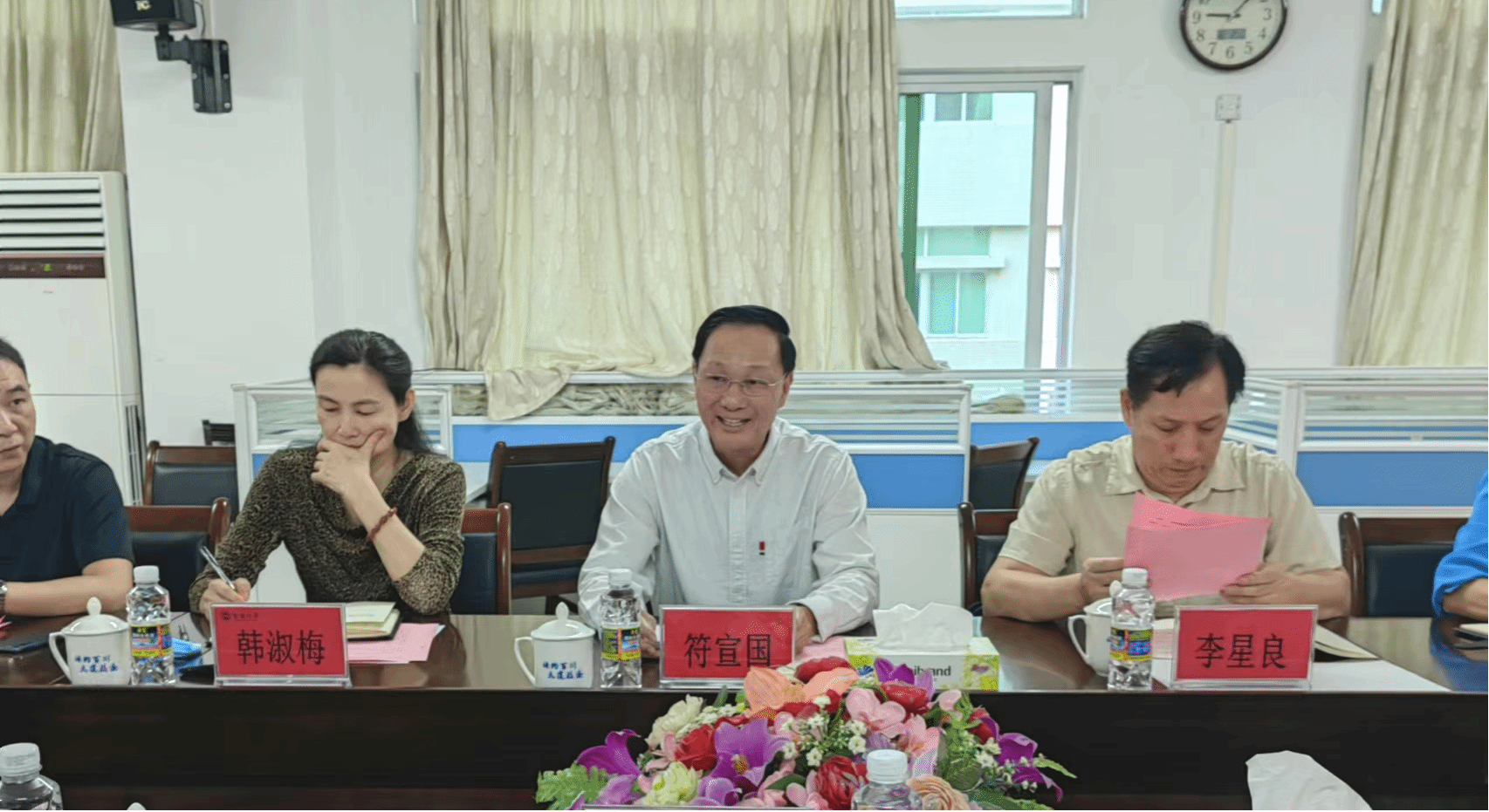 为深入学习贯彻习近平总书记关于教育的重要论述,推动教育教学改革,促进马克思主义理论学科和思想政治理论课的高质量发展。6月29日上午,澳门网投官方网站“习近平总书记关于教育的重要论述”理论研讨会在澳门网投官方网站召开。来自海南师范大学、海口经济学院、琼台师范学院、海南经贸职业学院等院校,以及澳门网投官方网站椰风书院、南海书院、乘风书院等单位的专家、领导共叙话题。海南省社科联副主席李星良、澳门网投官方网站党委书记符宣国、校党委组织部、宣传部主要领导出席会议,学院主要领导、各教研室主任、教师代表和学生代表共同参与研讨。澳门网投官方网站副院长(主持行政工作)杨娜主持会议。