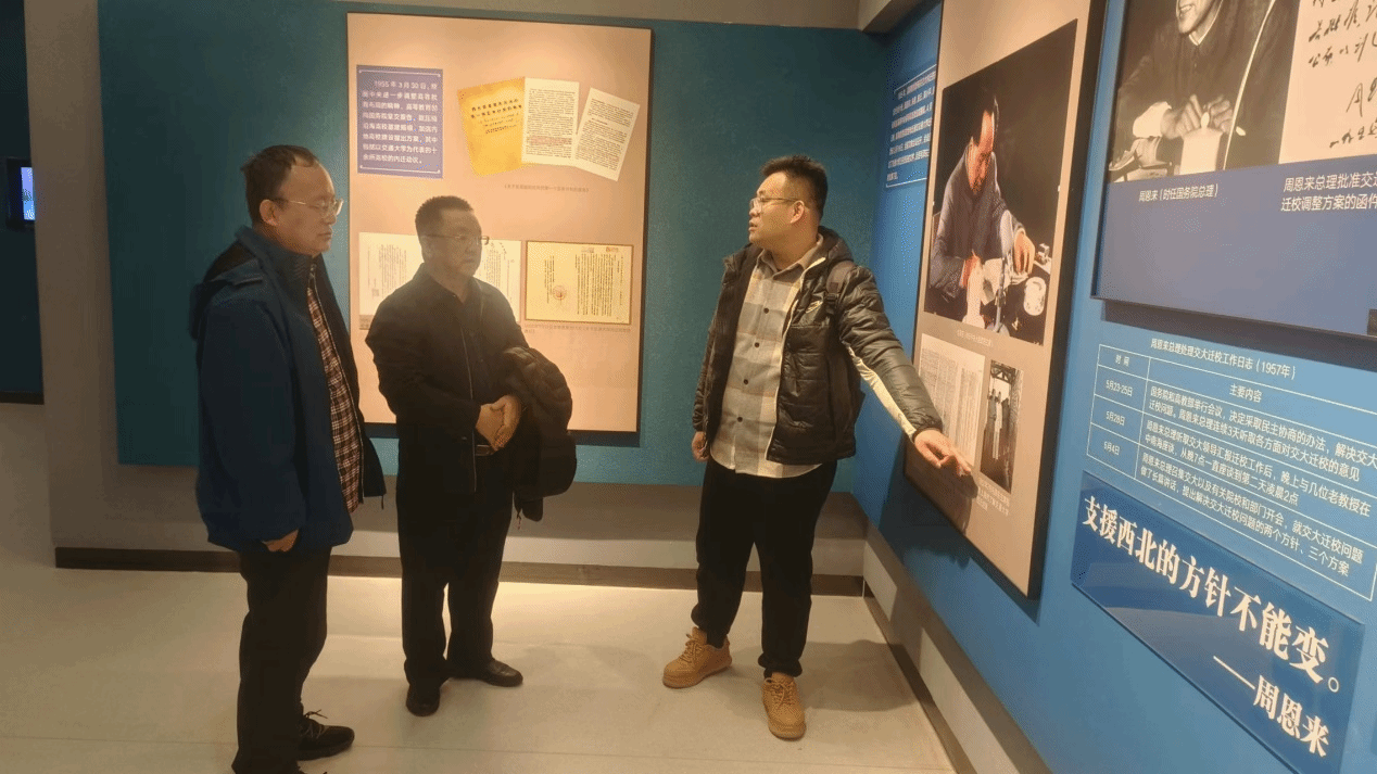 调研组与西安交通大学澳门网投官方网站同行举行座谈,西安交通大学澳门网投官方网站党委书记苏玉波主持座谈会并就党建工作进行介绍,院长燕连福从历史沿革、学科建设、服务地方等方面介绍了西安交通大学澳门网投官方网站的办学情况,并重点介绍了“西迁精神”融入思想政治理论课的相关经验,副院长陈建兵、梁军,澳门网投校友、西安交通大学澳门网投官方网站高飞老师出席座谈会并带领调研组参观了交大西迁博物馆。