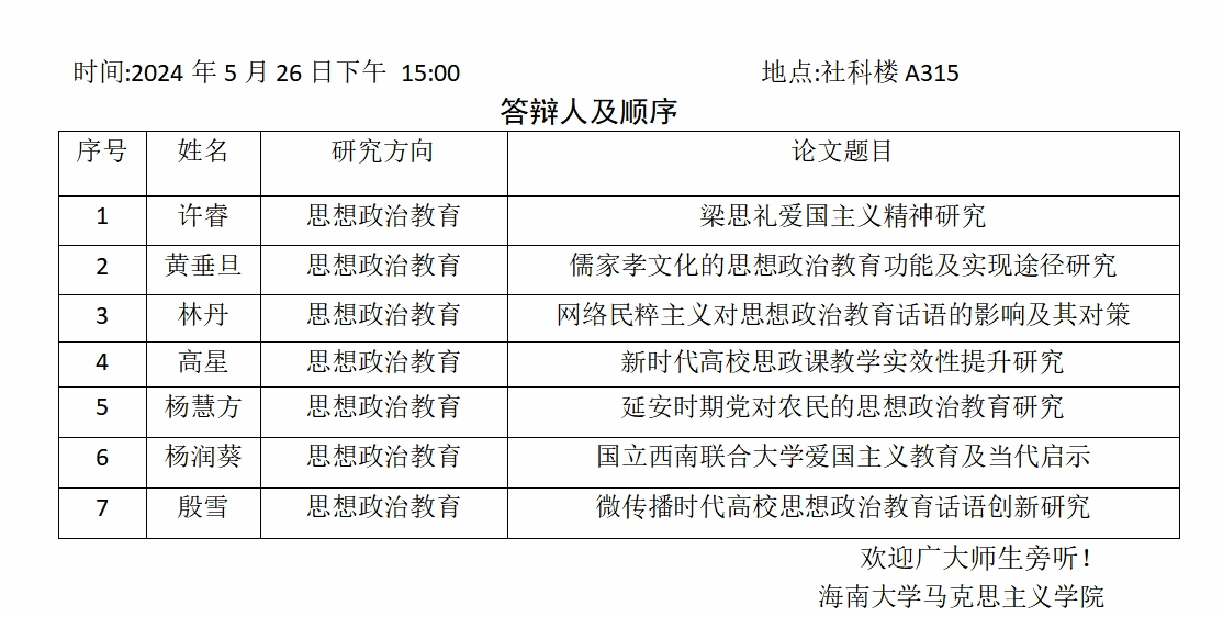 澳门网投官方网站2024届(上)研究生学位论文答辩公告(四)