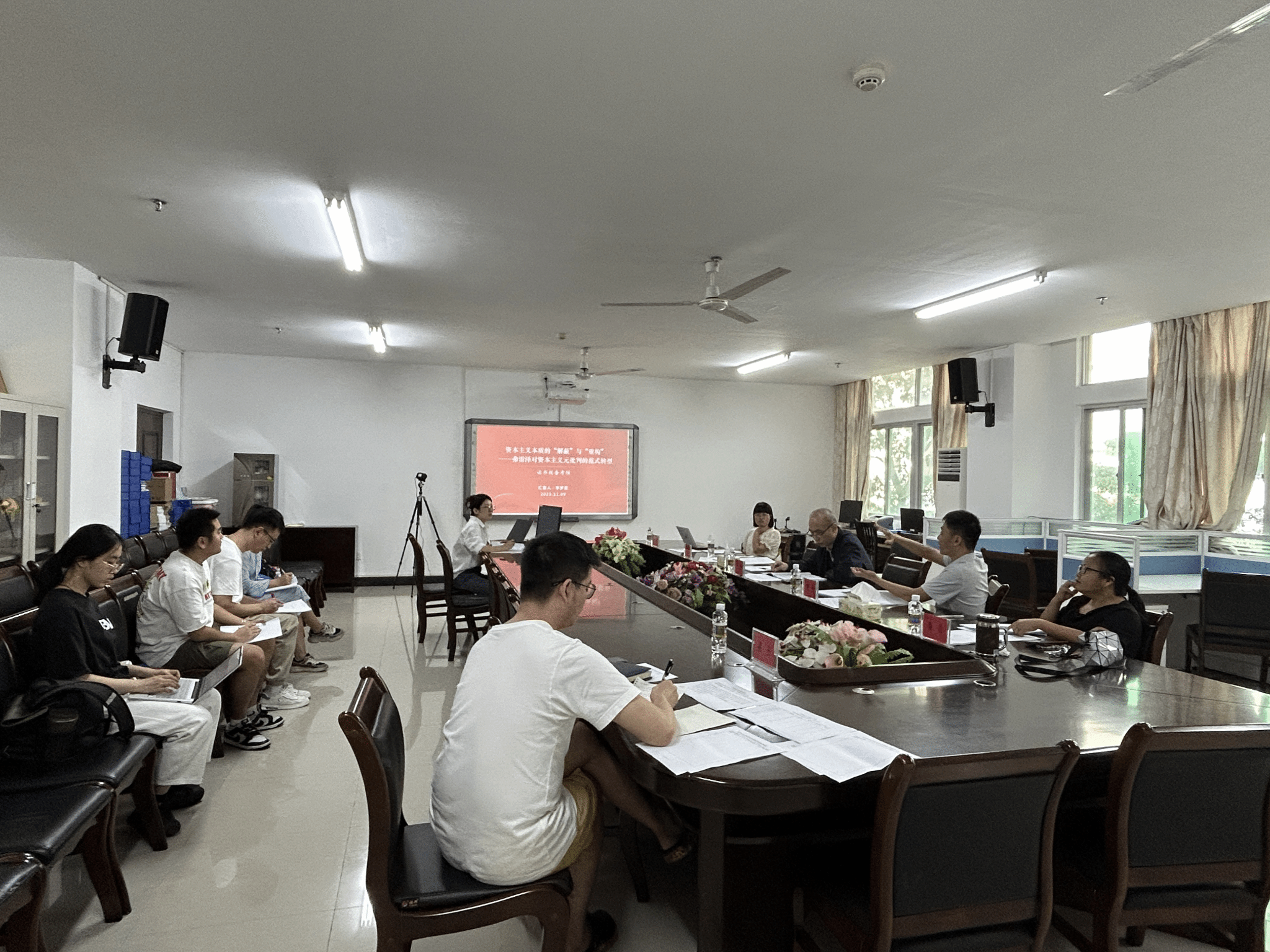 根据各位博士生所作的读书报告,导师们分别进行了点评。导师们在点评中指出,要从马克思主义原著的理论价值和当代意义入手,树立研读马克思主义原著的正确方式与态度;要带着问题意识阅读马克思主义经典原著,在研读过程中带着问题思考,充分掌握原著的时代背景和理论精髓;要注意对马克思主义经典原著中的核心观点进行整理提炼,从中寻找学术研究的突破口;要通过深入研读原著,进一步夯实专业理论根基,为选题定向、研究写作打下坚实基础;要在生活实践中灵活运用马克思主义,结合我国的具体实际,深入思考怎样用经典理论更好地解决现实社会问题。