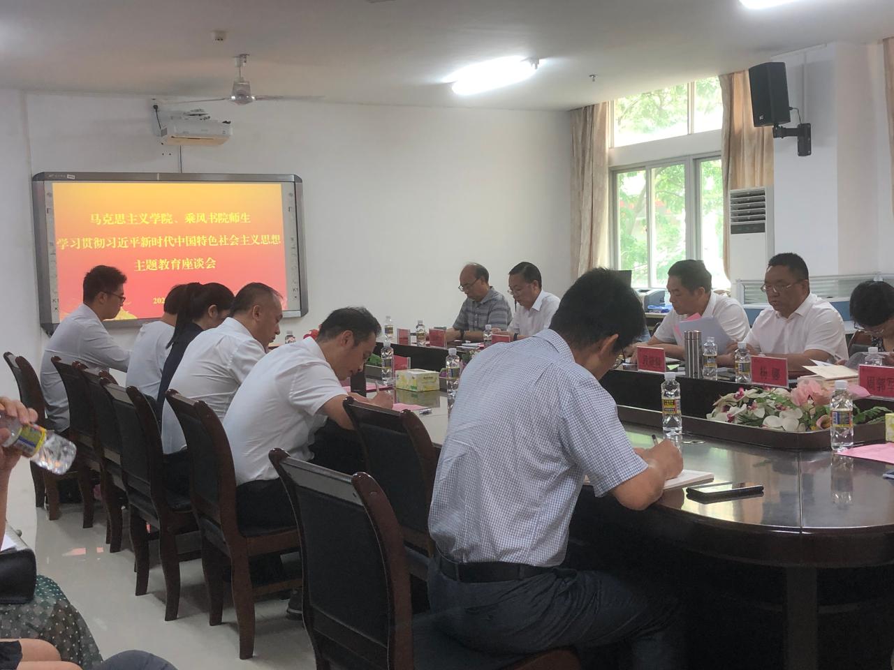 4月21日下午,澳门网投官方网站和乘风书院师生学习贯彻习近平新时代中国特色社会主义思想主题教育座谈会暨主题教育读书班辅导报告会在社科楼A-311室顺利召开,与会师生围绕“深入学习研究习近平新时代中国特色社会主义思想,在中国式现代化和中国特色自由贸易港建设中发挥思想引领作用”这一主题进行深入研讨。海南省委主题教育第九巡回指导组成员黄三喜、澳门网投官方网站主题教育领导小组办公室综合组副组长徐望来,澳门网投官方网站党委书记段捷频、副院长杨娜、吴朝阳,乘风书院党委副书记周郭军出席,澳门网投官方网站各党支部书记、各行政办主任、教师党员代表和乘风书院学生党员代表参加座谈会。会议由澳门网投官方网站党委书记段捷频主持。