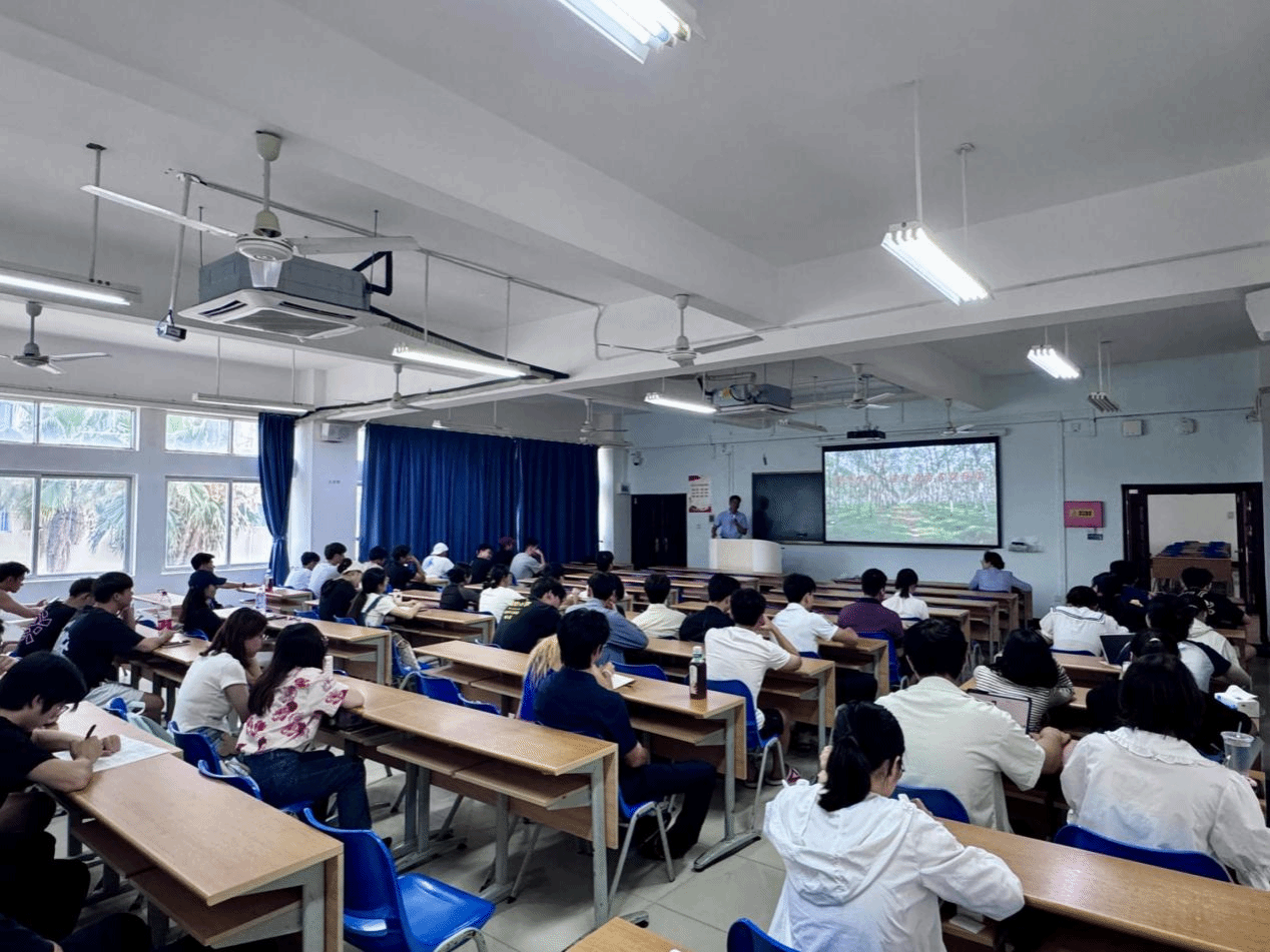 “海南农垦不仅为中国乃至世界的天然橡胶产业做出了巨大贡献,在这个创业的过程中也形成了独特的农垦精神。那是一种战天斗地、不怕困难,勇于开拓、无私奉献的精神,是海南农垦人用自己的实际行动诠释的爱国情怀和艰苦奋斗精神。这种精神不仅适用于天然橡胶事业,更适用于我们每一个人的学习和生活。”通过王智的倾情授课,极大激发了同学们的爱国情怀和社会责任感,深刻感悟了先辈们“艰苦奋斗、勇于开拓”的进取精神。