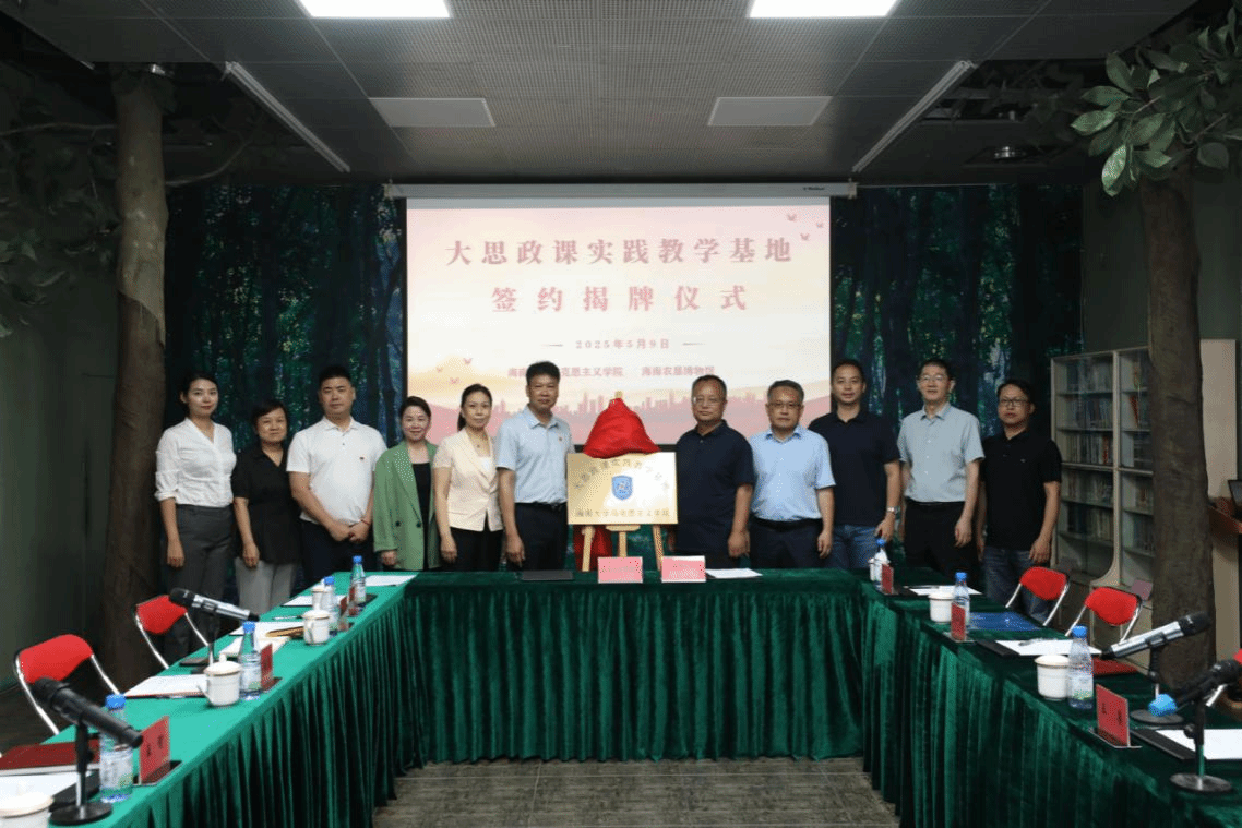 5月9日下午,澳门网投官方网站与海南农垦博物馆“大思政课”实践教学基地结对共建签约暨访企拓岗促就业交流活动在海南农垦博物馆举行。海南农垦博物馆副馆长王智,澳门网投官方网站副院长王善、蔡文举、王一闳、海南省大中小学思政课一体化建设(澳门网投官方网站)联盟负责人贺尧夫、学院实习实训负责人龙借琼参与此次揭牌仪式,海南农垦博物馆展陈宣教部部长吴运霞主持活动仪式。